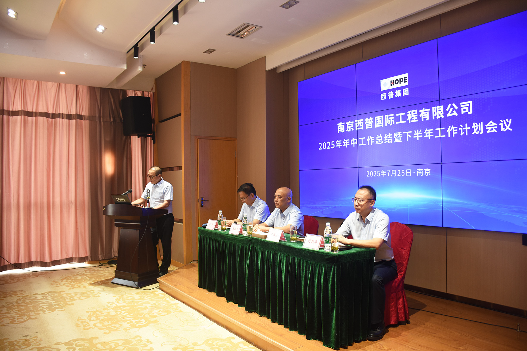 王敬濤總裁向會議作了《南京西普國際工程有限公司 2025 年年中工作報告》,從市場營銷、項目執(zhí)行、可持續(xù)發(fā)展及企業(yè)綜合管理三方面,全面總結(jié)上半年工作得失,進一步統(tǒng)一思想、鼓舞士氣,為下半年重點工作明確方向。